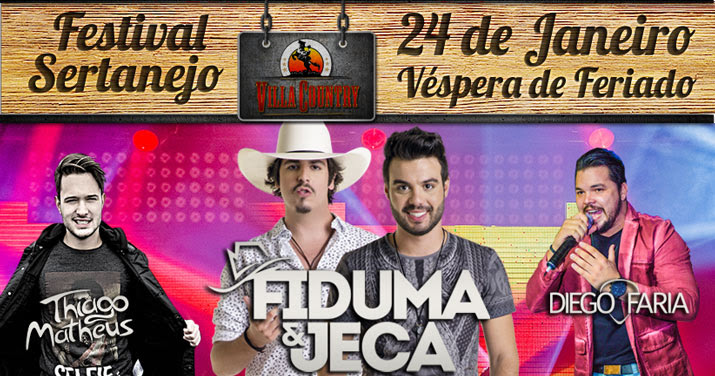 A Villa Country dá início à maratona anual de grandes shows, em 24 de janeiro, e anuncia a sétima edição do Festival Sertanejo e receberá a dupla Fiduma & Jeca, Thiago Matheus e Diego Faria.