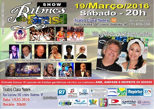Show "Ritmos do Brasil" já é sucesso total em São Paulo e agora chega em Diadema, para trazer os artistas da região mais perto de seupúblico.