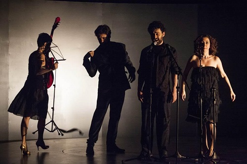O preto sobre o preto está em cena, e num sobrepalco redondo se instala uma floresta de microfones – alguns são utilizados, outros não -, como se estivessem prontos para um pronunciamento. E a fala acontece, de fato, mas não da forma mais convencional. É neste cenário que são realizadas as cenas independentes que compõem o PROJETO BRASIL. Há momentos de texto propriamente dito, inspirados em discursos reais, como a ex-Ministra da Justiça da França Christiane Taubira ou o ex-presidente do uruguai Jose Mujica, bem como criações da própria companhia, além de cenas que buscam outras possibilidades de expressão. São tratados temas como política, igualdade, consumo exacerbado, economia de mercado, ética, o caráter descartável de tudo na nossa sociedade, a ânsia por compreender e se comunicar. Outras questões abordam o trabalho do grupo, como o papel do ator, do teatro e da arte. Os figurinos, também em preto, remetem a um “fim de festa”, como define Marcio.