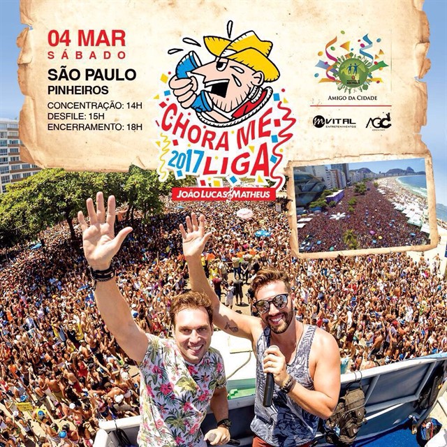 Nesse sábado, 04 de março, tem bloco CHORA ME LIGA em São Paulo!
