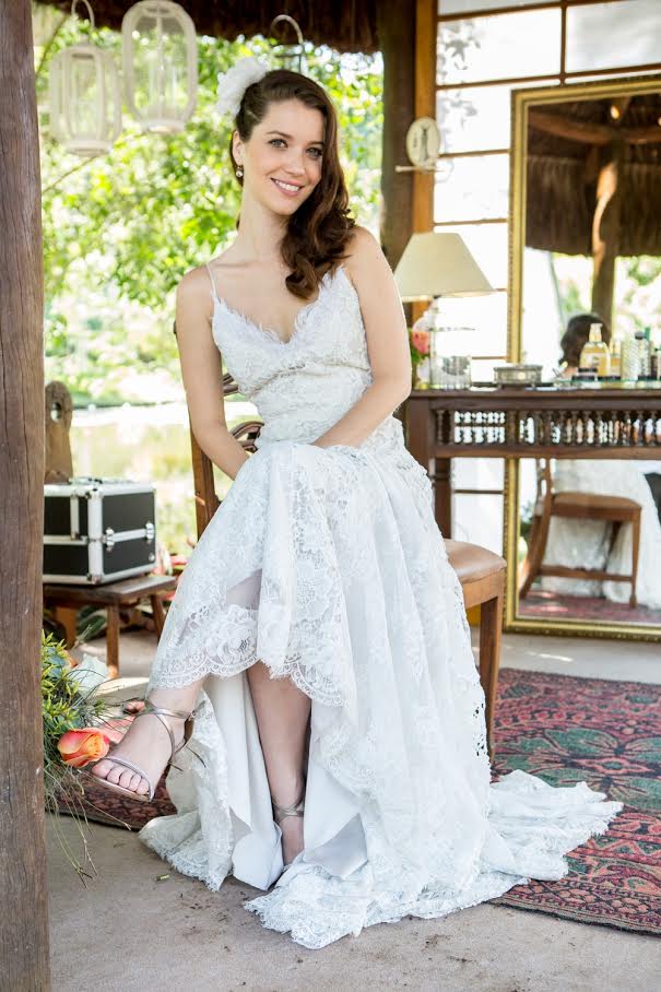 Uma noivinha simples e moderna também foi à atriz Nathalia Dill, a Julia de Rock Story. Essa que se casou com um rockeiro descolado, escolheu um vestido bem simples todo de renda é uma ideia para casamentos ao ar livre que são leves, mas não perdem o glamour de uma noiva para o seu tão esperado dia.