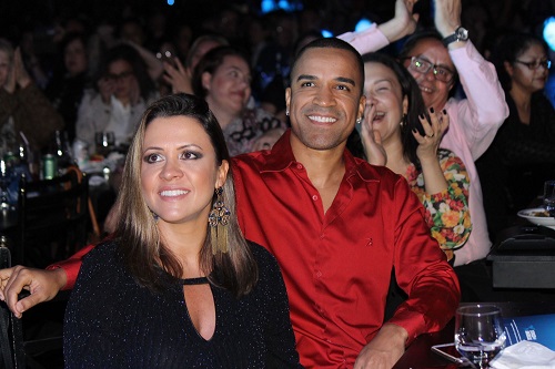Já na primeira fila de gargarejo prestigiando o espetáculo, estava Fernando Pires, irmão de Alexandre Pires, que era puro orgulho de seu mano no palco. Após o show o prestigio continuou no camarim, onde o Claudinho, vocalista do Grupo Negritude Jr, esteve acompanhada de sua esposa a jornalista Roneia, paparicando Alexandre Pires.