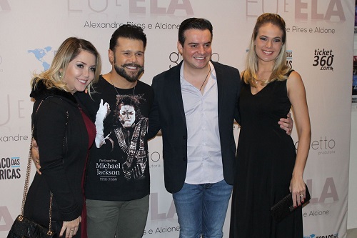 | Marcos e Belutti com Alexandre Pires a esquerda / A dupla e suas esposas a esquerda. |