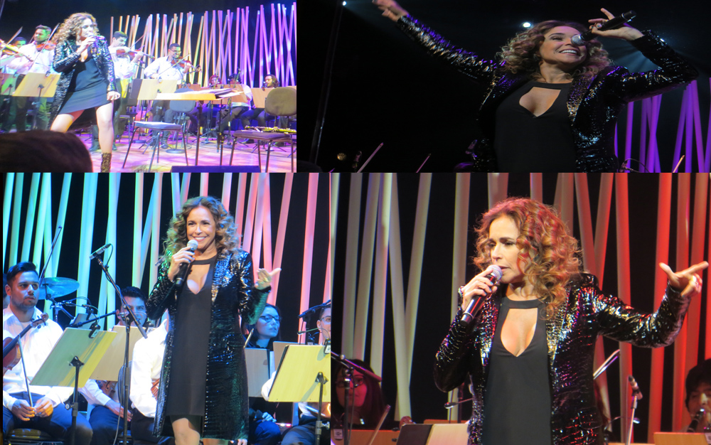 A cantora participou do concerto por mais de uma hora, encantou a plateia mista de todas as idades e desfilou sucessos como O Canto da Cidade e Swing da Cor.