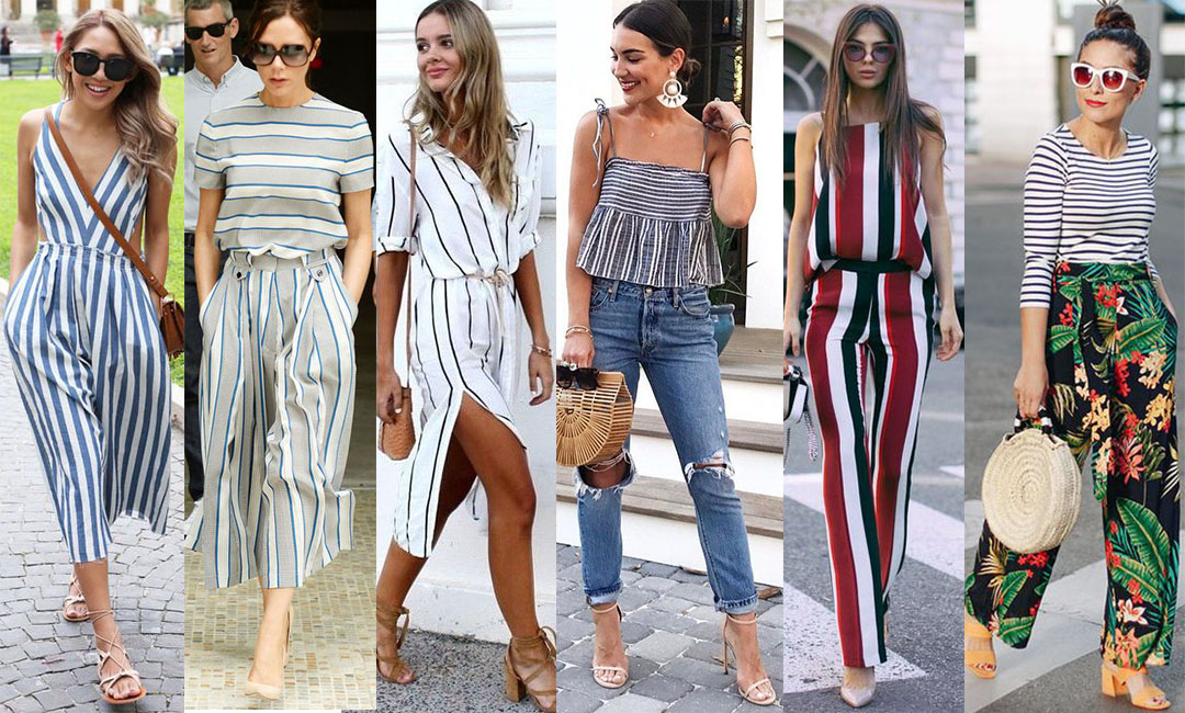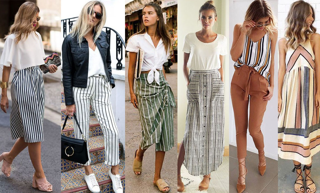 Pra quem tem peso visual na parte inferior do corpo (quadris, pernas e bumbum), usar listras verticais em calças, saias, vestidos e macacões alongam a silhueta e deixam a região mais fina. Outra dica é usar partes de cima com listras horizontais que ampliam a região e harmonizam a silhueta.