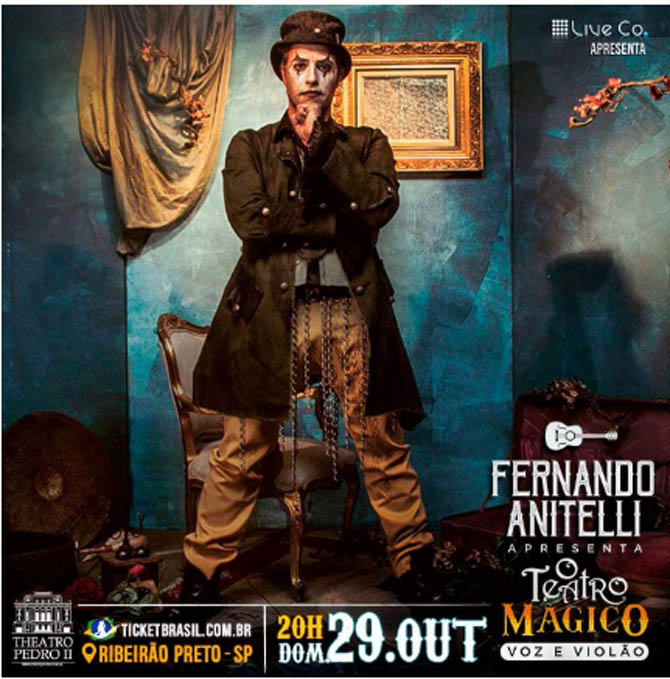 No próximo dia 29 de outubro, Fernando Anitelli apresenta “O Teatro Mágico” em Voz e Violão, no Theatro Pedro II de Ribeirão Preto. O criador e compositor tem se dedicado a pensar os rumos da companhia e nada melhor do que refletir esse momento com o calor do público a partir da essência de toda a caminhada sonora: o violão, a voz e muita energia.