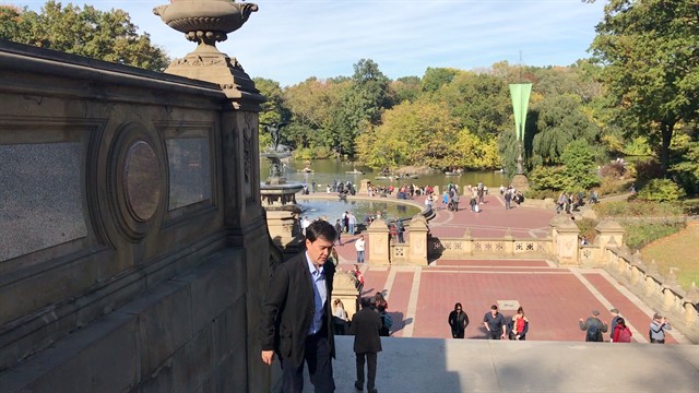 | Dr. Ailthon passeia no Central Park de Nova York. |