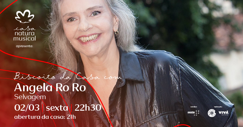 Na sexta, 2 de março, às 22h30, na Casa Natura Musical, a cantora Angela RoRo apresenta show do seu álbum Selvagem(Biscoito Fino), acompanhada pelo pianista Ricardo Mac Cord. Este é o terceiro de uma série de shows do projeto Biscoito da Casa, uma iniciativa da Biscoito Fino com a Casa Natura Musical que promove shows com o consagrado elenco de alta qualidade da gravadora. O projeto estreou com Angela Maria e as Canções de Roberto e Erasmo (em 17 de janeiro) e tem, entre suas próximas atrações, nomes como Gal Costa (23 e 24 de fevereiro), Francis e Olivia Hime e Fabiana Cozza.