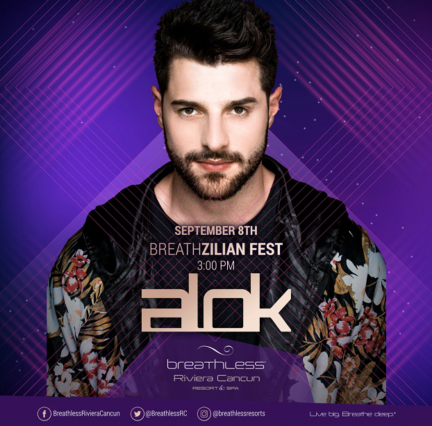 O DJ ALOK, ícone da música eletrônica brasileira e destaque internacional, acaba de ser contratado para comandar a festa do feriado da Independência do Brasil, chamado “BREATHZILIAN FEST”, no Breathless Riviera Cancun Resort & Spa, com o intuito de exibir todo seu talento em uma festa elegante e sofisticada neste resort all inclusive e exclusivo para adultos situado entre o Mar do Caribe e a Lagoa da Baía Petempich, na Riviera Cancun, México.