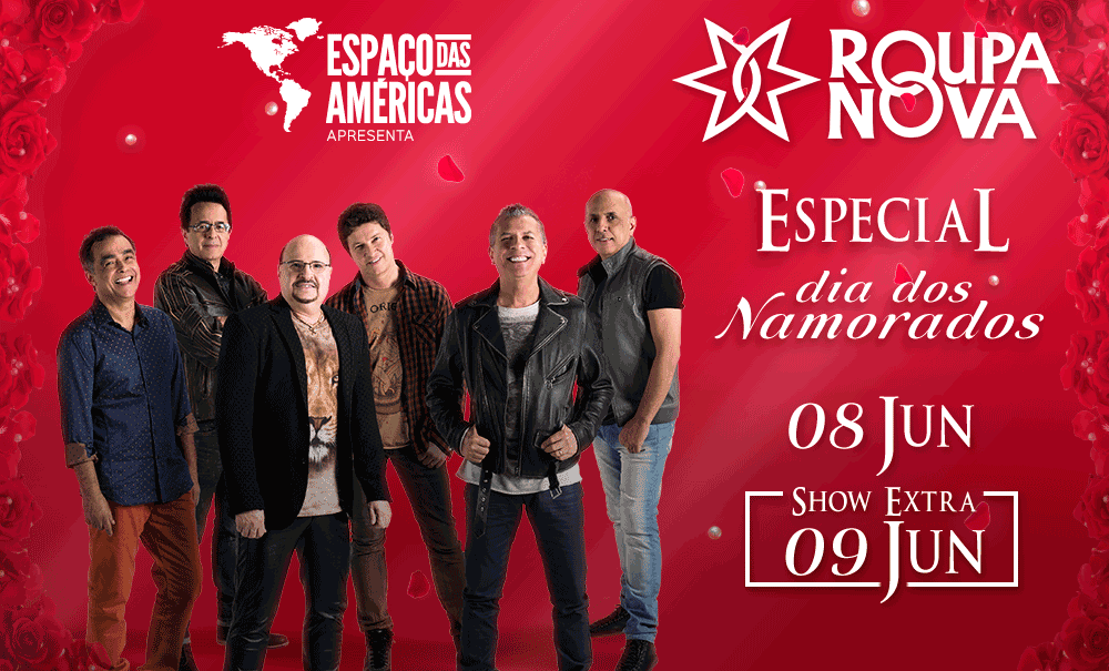 Após sucesso de vendas, o Espaço das Américas prepara mais uma noite para lá de romântica para os namorados e eternos apaixonados que comemoram essa data especial em junho. Neste mês, no dia 8, sexta-feira, e dia 9, sábado, o Roupa Nova faz apresentações na casa, contando com um repertório repleto de hits que marcaram época.
