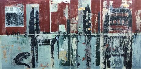 Pintura em técnica mista (pigmento natural e colagem) sobre lona 80X160 |