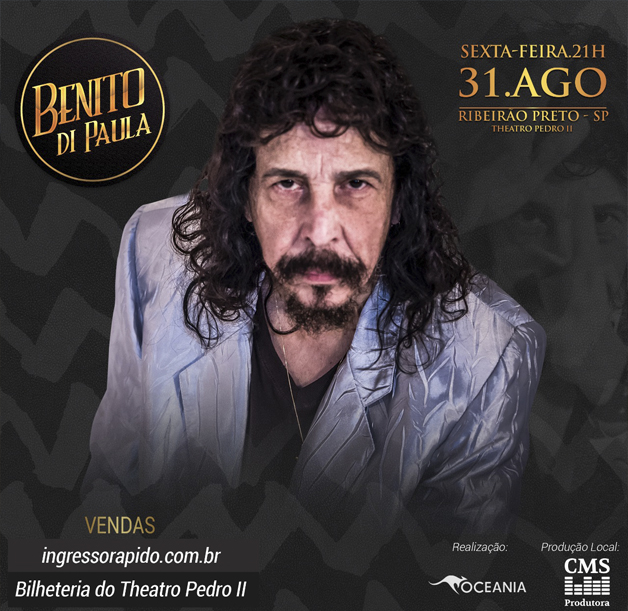 O cantor, pianista e compositor Benito Di Paula, que está lançando o single “Essa felicidade é Nossa” com turnê pelo Brasil e em Luanda, se apresentará no dia 31 de agosto, a partir das 21h, no Theatro Pedro II, em Ribeirão Preto-SP.