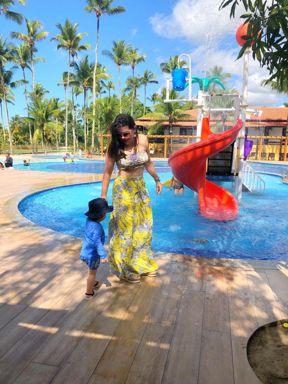 A influencer escolheu o Porto Seguro Praia Resort para descansar com a família. Segundo ela, Porto Seguro é sua segunda casa, descrevendo como “meu canto”.