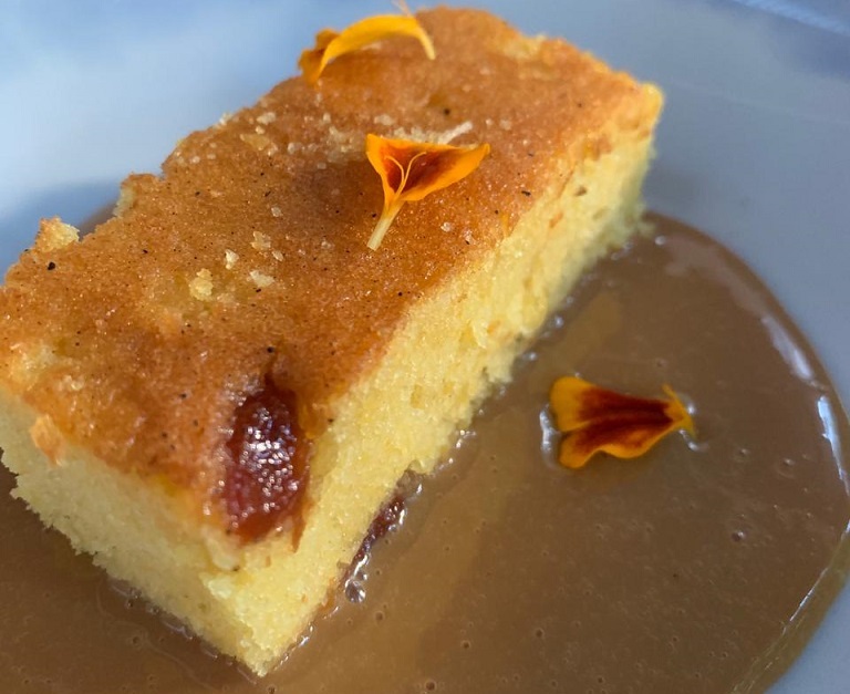 - Nhoque de Milho com molho de carne seca e farofa de paçoquinha.