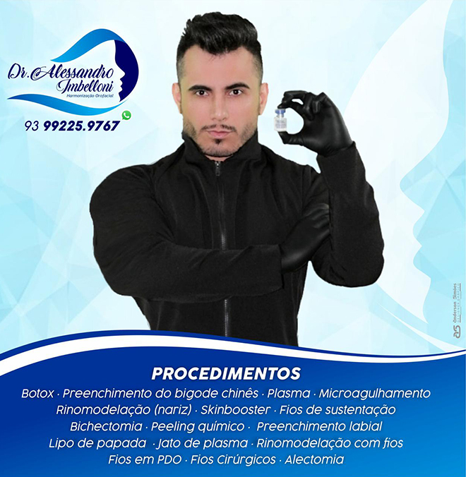 Cirurgião dentista e empresário, o Dr. Alessandro Imbelloni pode ser considerado uma referência na área. Vindo da cidade de Óbidos, no estado do Pará, vem sempre buscando conhecimento, utilizando técnicas inovadoras para executar os procedimentos – e já é considerado um expert em harmonização orofacial.