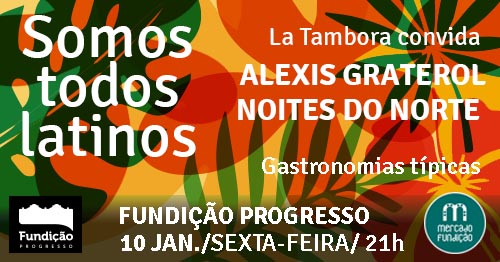 O Centro Cultural Fundição Progresso recebe na próxima sexta, dia 10, a festa "Somos Todos Latinos". O evento terá comidas típicas e apresentações do grupo La Tambora Candombe, do venezuelano Alexis Graterol e do conjunto Noites do Norte. Segue abaixo a descrição da festa e serviço.