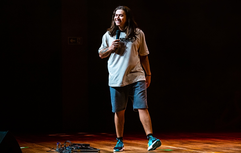 Fenômeno do YouTube com mais de 38 milhões de seguidores em seu canal, o humorista diverte a plateia contando grandes momentos de sua carreira, com piadas sobre diversas fases da vida. Com muito humor, Whindersson conta as aventuras de sua última turnê mundial e faz o público gargalhar até mesmo falando sobre os momento em que esteve afastado dos palcos, devido a uma cirurgia que realizou.