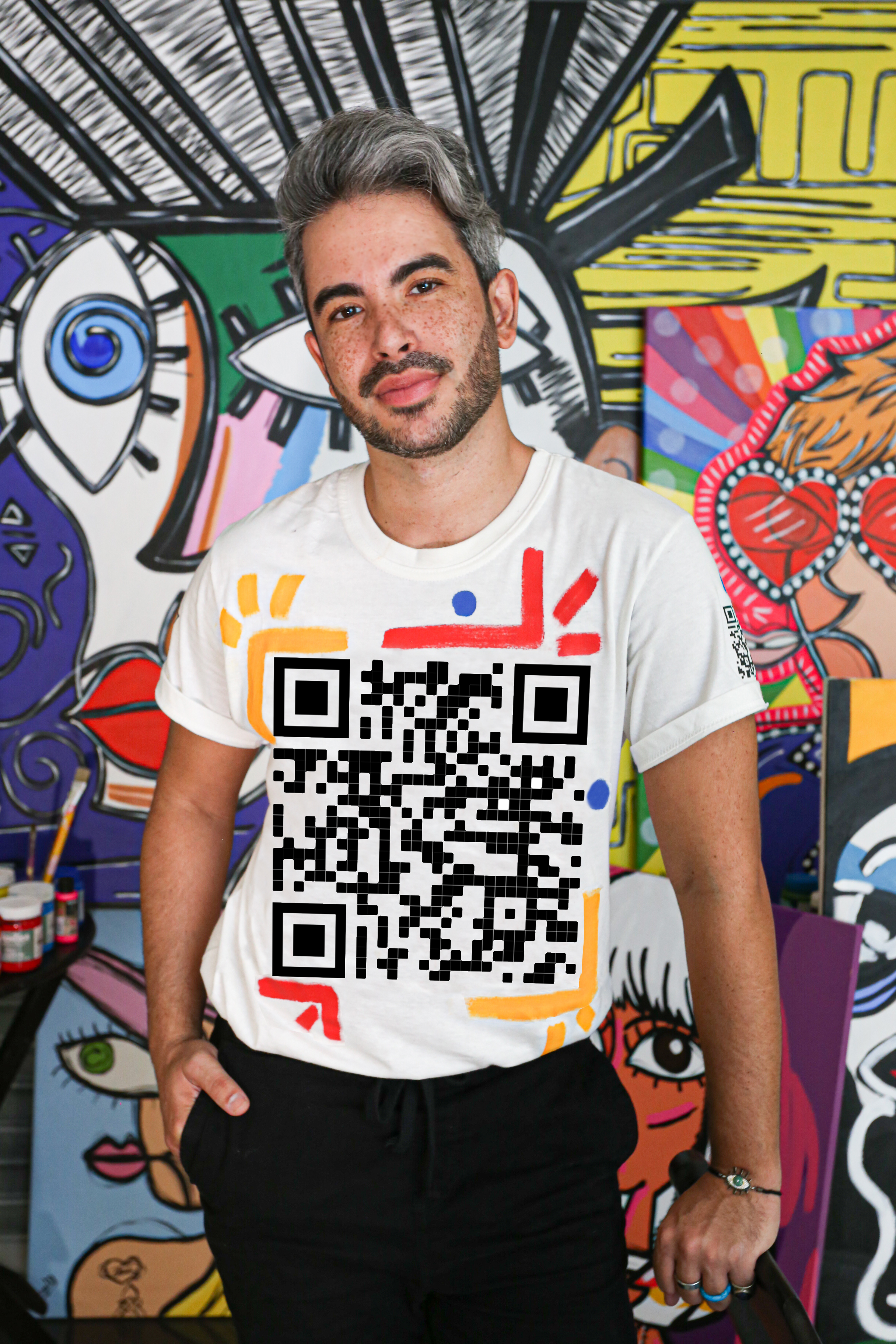 QUANDO O LEITOR APONTA A CÂMERA DO CELULAR PARA A O QRCODE NA CAMISA DO DIEGO, UM LINK É DIRECIONADO PARA O INSTAGRAM DELE.