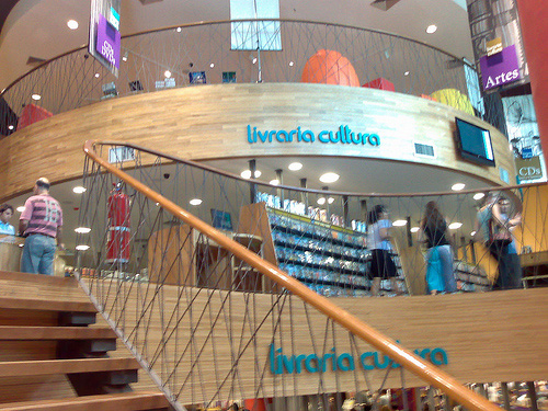 Mas é chegando ao terceiro pavimento que se tem a sensação de entrar em uma cidade feita de livros. Ladeada pelo nosso acervo de literatura brasileira, literatura estrangeira e humanas, uma ampla área dedicada à experiência da leitura ocupa o espaço central do piso, criando uma arena cultural, que receberá eventos. Ao fundo, a grande escadaria leva diretamente aos livros de arte e dá acesso ao quarto piso: uma passarela que contorna toda a loja. Além de títulos do nosso catálogo de técnicos, idiomas, esportes e animais, entre outros, o quarto pavimento terá uma parte reservada ao espaço Travel, no qual guias, mapas, roteiros e livros sobre os principais destinos do mundo estarão reunidos em um só lugar.