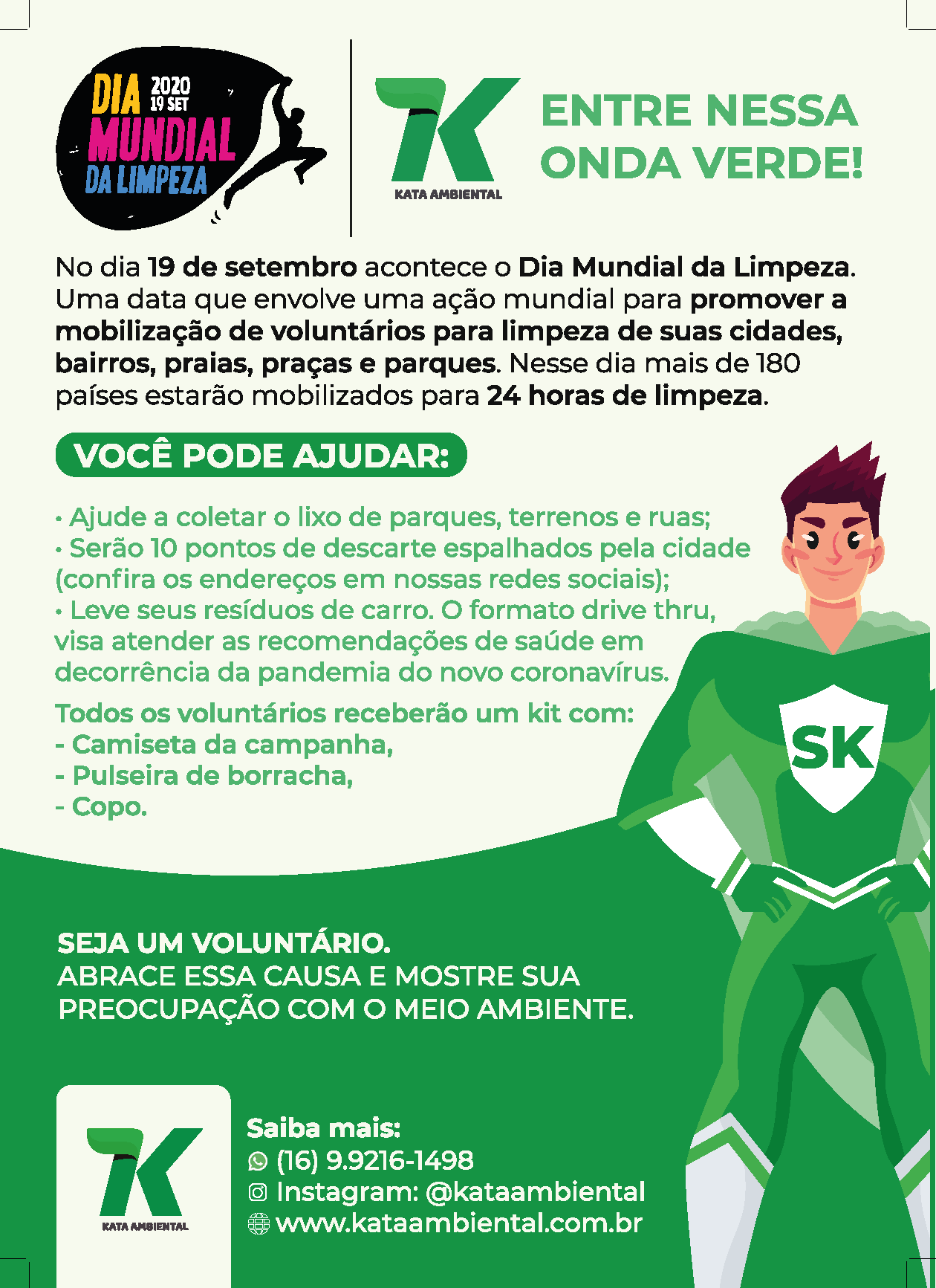 Pela primeira vez, Ribeirão Preto vai fazer parte da onda verde que está na sua terceira edição em território nacional. A ação está sendo organizada pela Kata Ambiental, companhia especializada na gestão de resíduos e logística reversa, e pelo instituto Octávio Diniz Junqueira.