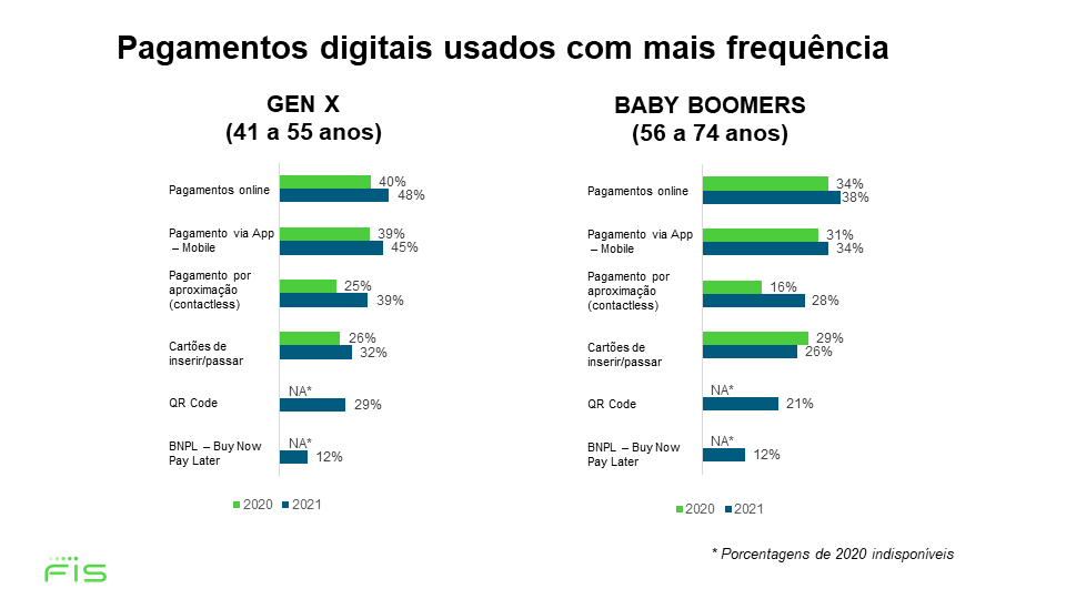 Também aumentou a preferência por pagamentos contactless, aqueles feitos por aproximação, sendo mais representativo o uso entre os Young Millennials, com 49%, seguidos das gerações Z (43%) Senior Millennials (42%), X (39%) e Baby Boomers (28%). Para Marcelo Góes, a tendência de crescimento dos pagamentos digitais no Brasil evidencia que “o consumidor de hoje se preocupa com a conveniência, agilidade e segurança. A tecnologia e a inovação financeira, como mostra o levantamento deste ano, vem ofertando exatamente isso”.
