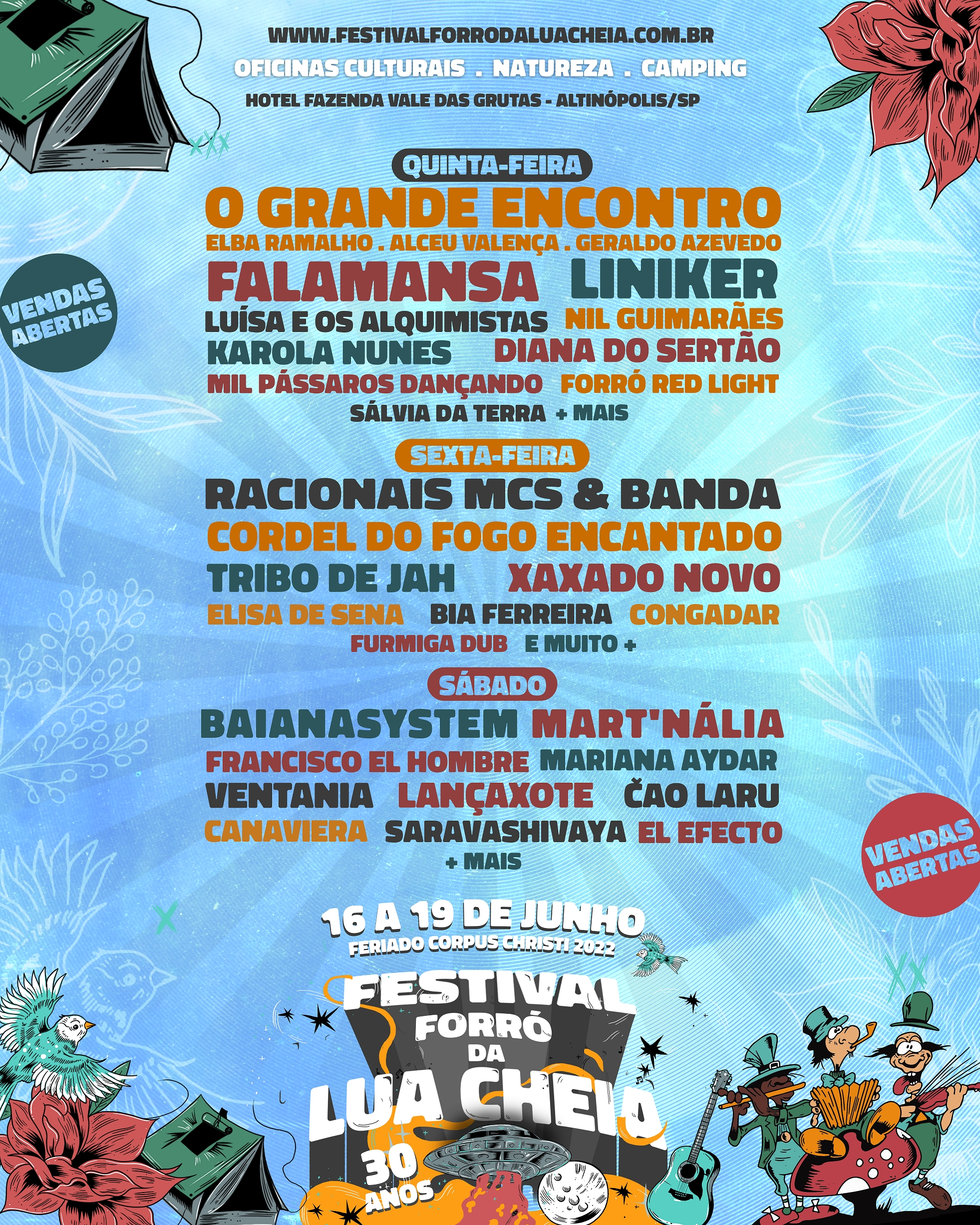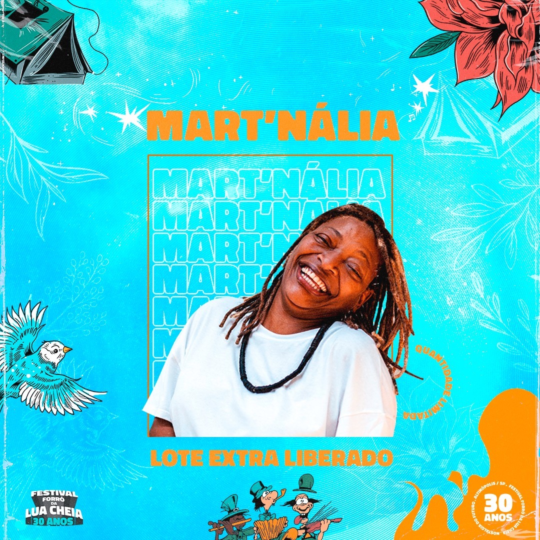 Celebrando sua trigésima edição, o Festival Forró da Lua Cheia, realizado em Altinópolis, a 380 quilômetros de São Paulo, confirma a cantora Mart’nália como mais um dos nomes a compor a programação do evento. Além disso, o festival também anuncia um lote extra de ingressos, dando uma última chance para o público que não garantiu seu tíquete. Agora, para além de uma infraestrutura de 6 palcos, que receberão mais de 100 atrações – como O Grande Encontro, BaianaSystem e Racionais MC's, o evento ainda vai expandir a área aberta em mais de 550.000 metros quadrados e a toda sua infraestrutura, no intuito de melhor receber o público entre os dias 16 a 19 de junho, feriado de Corpus Christi, no Hotel Fazenda Vale Das Grutas. O novo lote começou a ser vendido na terça-feira, 8 de março, no site oficial do evento (compre aqui).