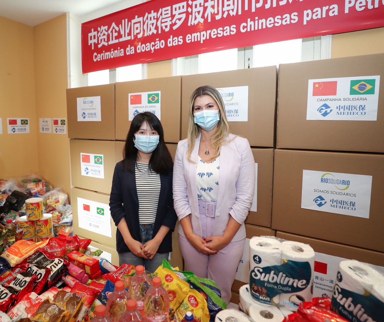 | A representante de MEHECO do Brasil participou do evento de cerimônia da doação conjunto com as empresas chinesas, para expressar o apoio de solidariedade ao povo de Petrópolis, tirando uma foto com a presidente de honra do RioSolidario, Sra. Analine Castro. | Foto: Divulgação |