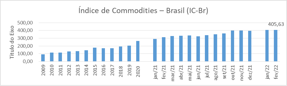 Desde 2020, o mercado sinaliza alta nos preços das principais commodities. O conflito entre Rússia e Ucrânia acelerou essa tendência. O relatório do Banco Central aponta que a escalada dos preços internacionais não dá sinas de reversão (gráfico abaixo).