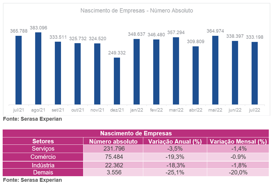 Em julho, 333.198 negócios foram criados no país, de acordo com o Indicador de Nascimento de Empresas da Serasa Experian. No comparativo com o mesmo mês do ano passado, o índice revelou queda de 8,9%. Para o economista da Serasa Experian, Luiz Rabi, mesmo assim, a quantidade de novos empreendimentos é expressiva. “O empreendedorismo, principalmente durante a pandemia, foi uma ótima ferramenta para criar ou complementar rendas. Agora, aos poucos as pessoas têm conseguido voltar a trabalhar sem ter que abrir o próprio negócio, como mostra a queda nos níveis de desemprego do país. De todo modo, empreender ainda é um objetivo para muitos”.