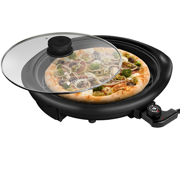 Fabricante entre as líderes do mercado de eletrodomésticos e eletroportáteis, a Cadence traz em seu Grill uma chapa antiaderente com pintura especial de 30 cm, permitindo os mais variados preparos, como de pizza, sem grudar o grudar o alimento. Sua tampa é de vidro temperado com alça de aço inox e válvula para saída de vapor, permitindo o acompanhamento do preparo das receitas. O termostato possui cinco variações de temperatura, trazendo maior funcionalidade no preparo de cada tipo de alimento. Seu pegador isotérmico, que não esquenta, proporciona maior segurança no manuseio.