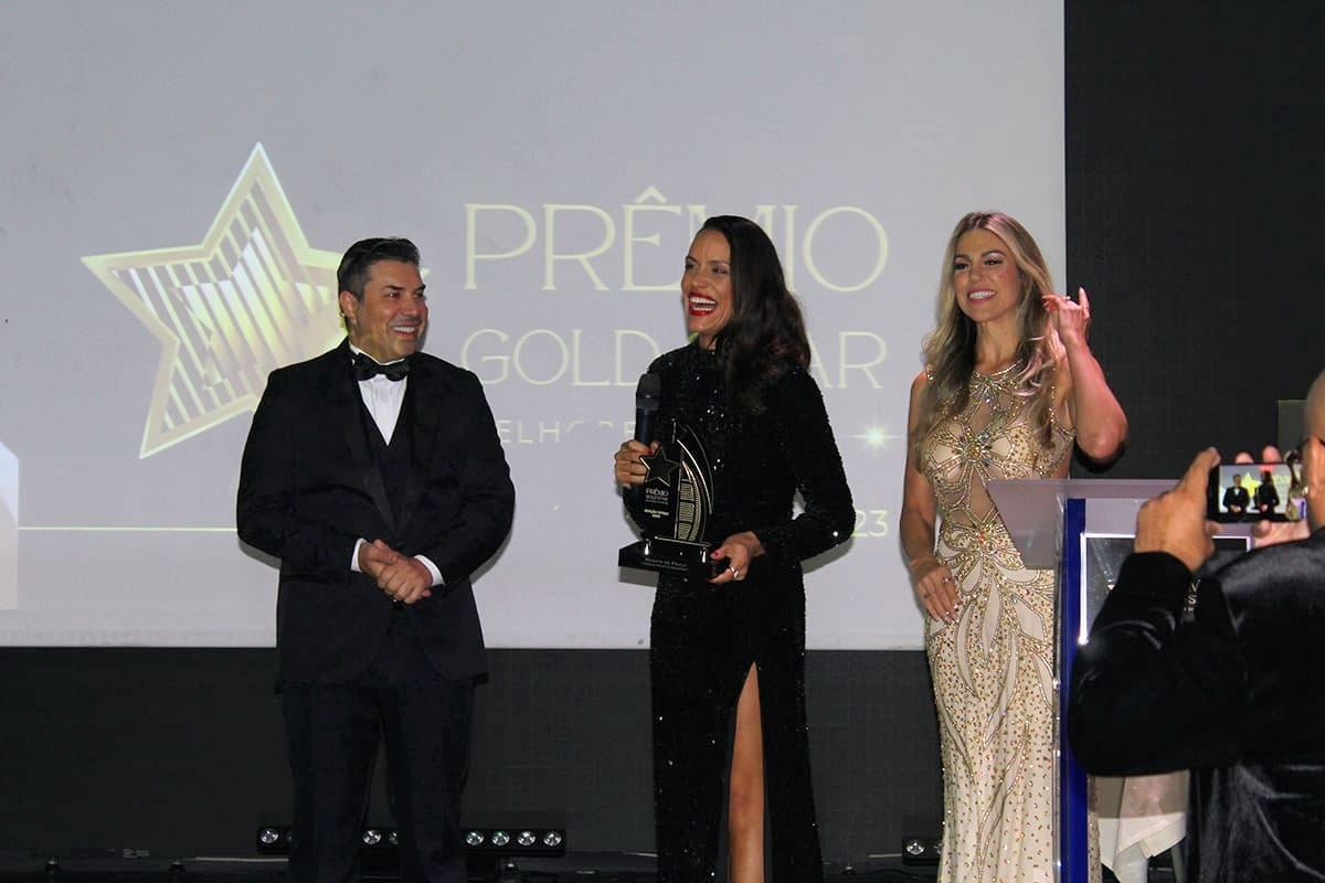 A comunicadora Renata de Paula recebeu recentemente o prêmio Gold Star Dubai em reconhecimento ao seu inovador método "Eu Apresentador", que ajuda profissionais de diversos setores a melhorarem suas habilidades de comunicação. A premiação, que homenageia nomes que se destacaram em 2023 pelo sucesso profissional, foi entregue em uma luxuosa cerimônia a bordo de um navio de cruzeiros na costa dos Emirados Árabes Unidos, que reuniu um seleto grupo de empresários e celebridades.