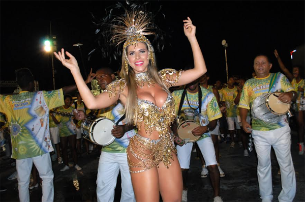 Sob os olhares da irmã Tati Minerato, Rainha de Bateria da Gaviões da Fiel, Ana Paula mostrou muito samba no pé e levou o público ao delírio ao rebolar na avenida. De fio dental, a loira mostrou o corpão esculpido na academia e disse ter sido bem recebida pela diretoria Peruche.