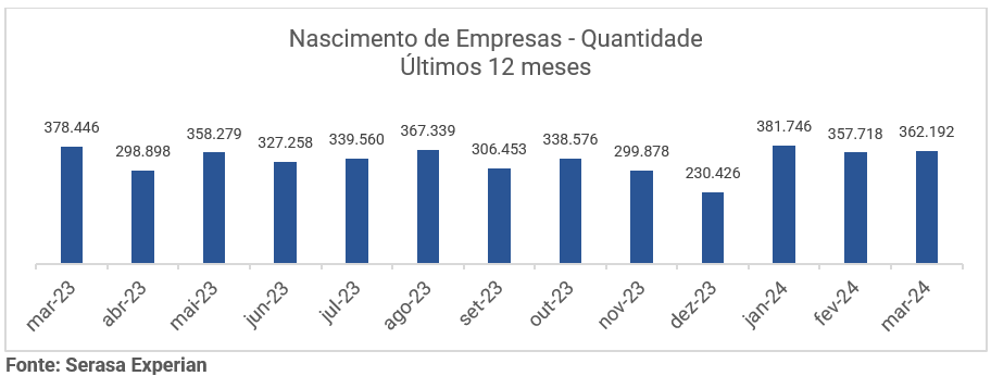 "Embora tenha havido uma queda em relação a março de 2023, a criação de empresas segue expressiva. Com a redução da taxa de desemprego, observamos que o surgimento de novas empresas é impulsionado mais pela inclinação empreendedora do que por uma necessidade imediata, já que muitos brasileiros demonstram o desejo de conquistar flexibilidade e autonomia", comenta o economista da Serasa Experian, Luiz Rabi.