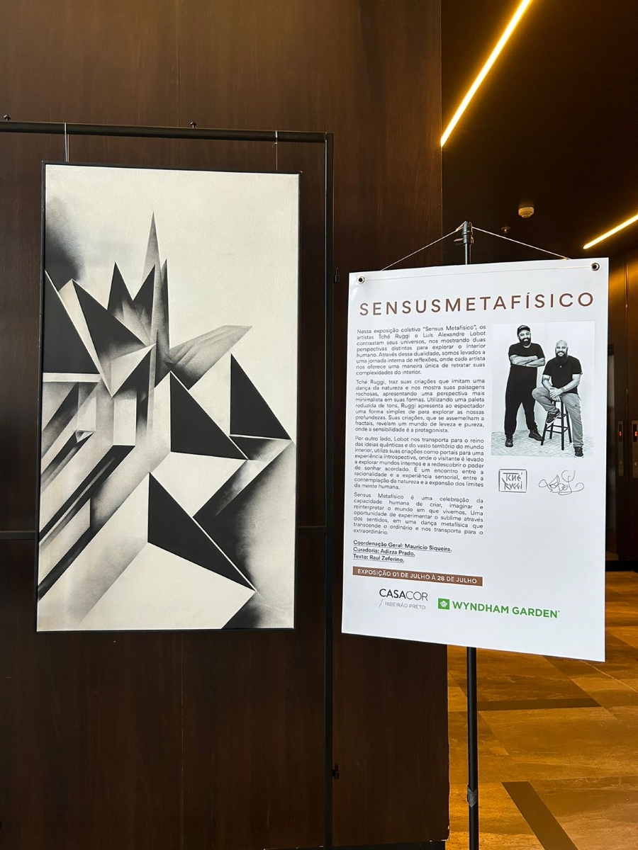 Transportando o universo artístico e cultural presente em seu evento oficial, a CASACOR Ribeirão Preto – que neste ano realiza sua 6ª edição entre os dias 20 de agosto e 20 de outubro – lança uma nova exposição em parceria com o Wyndham Garden Hotel. A mostra “Sensus Metafísico”, que conta com obras dos artistas Tché Ruggi e Luís Alexandre Lobot estará disponível para visitação até o dia 06 de agosto, no hall do Hotel.