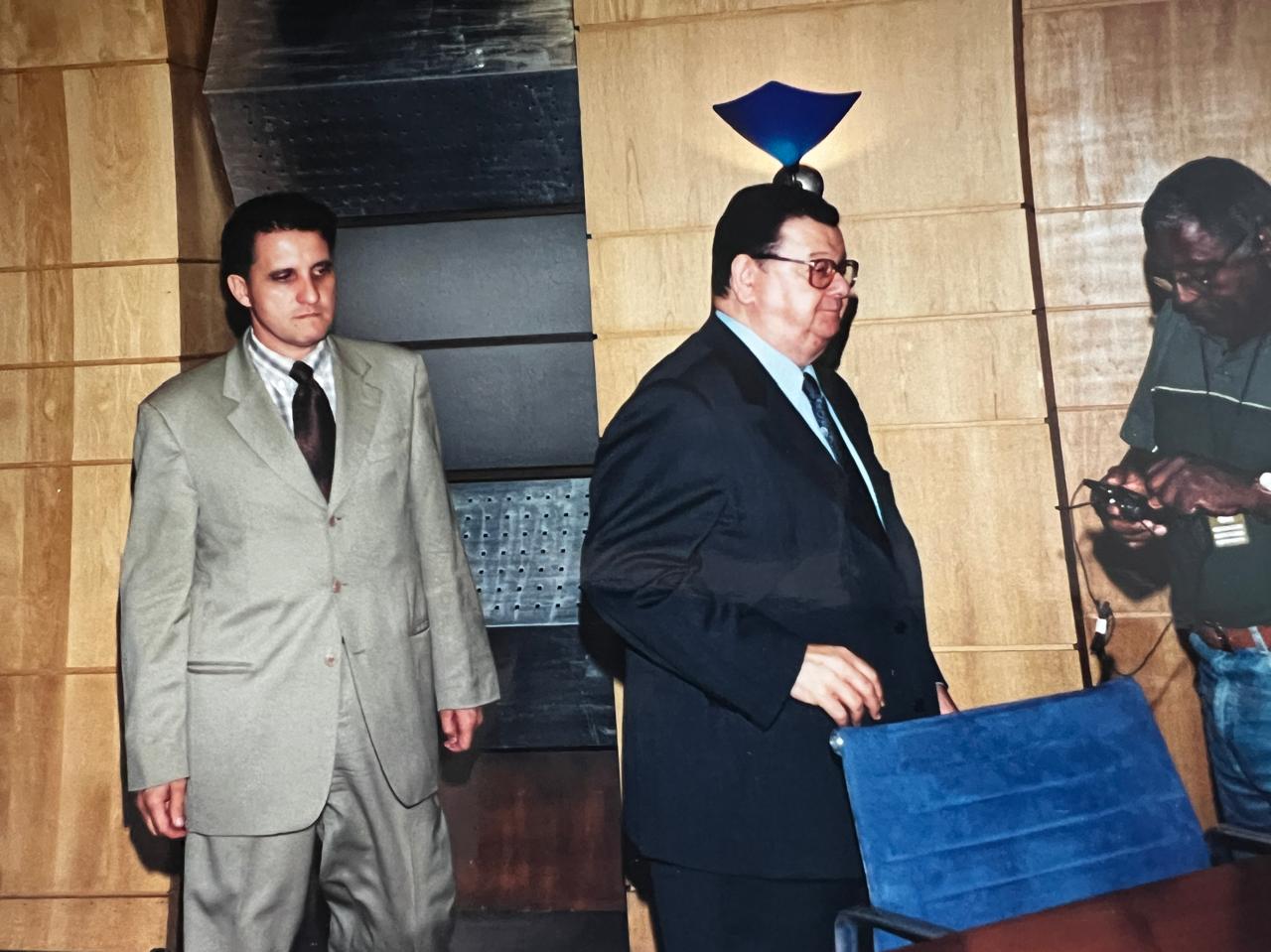 Foto: Zacarias Pagnanelli, CVO do Portal Cartão de Visita News, na Record TV em 2001 quando era Diretor Institucional do Grupo Record com o até então Ministro da Economia Delfim Neto, durante os bastidores do programa de entrevista de Boris Casoy. No momento da foto, Zacarias Pagnanelli recebeu Delfim em nome do Presidente da TV Record. |