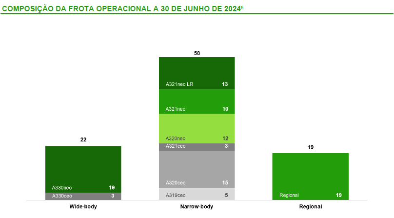 A frota operacional era composta por 99 aeronaves, a 30 de junho de 2024, sendo que 68% da frota operacional de médio e longo curso consistia em aeronaves da Família NEO (face a 67% a 30 de junho de 2023 e 27% a 30 de junho de 2019).