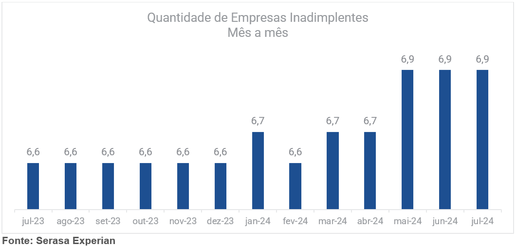 Foram 6,9 milhões de companhias com dívidas no período, número que segue estável desde maio deste ano