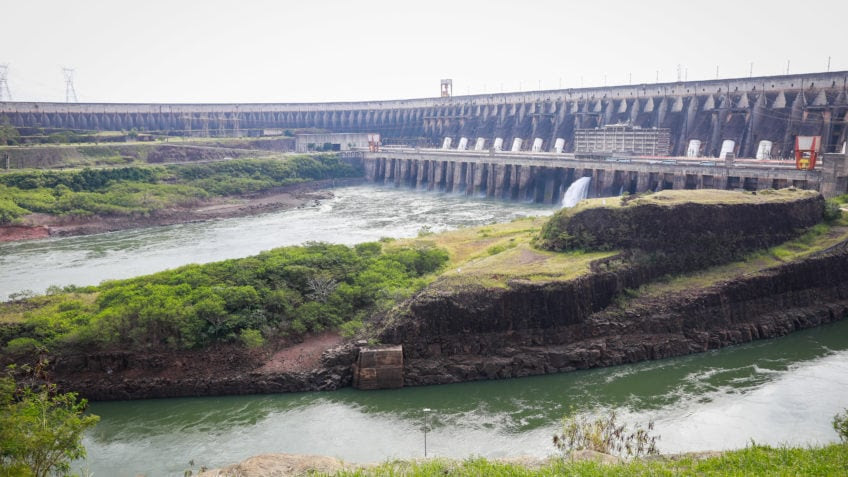 | Brasil tem projetos em estudo para construção de 42 novas hidrelétricas; na imagem, a maior usina existente no país atualmente, a de Itaipu, na fronteira do Brasil com o Paraguai |