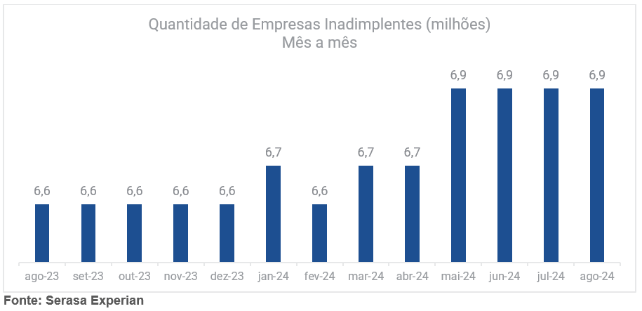 Total de companhias com dívidas atrasadas no período foi de 6,9 milhões; número se mantém estável há quatro meses