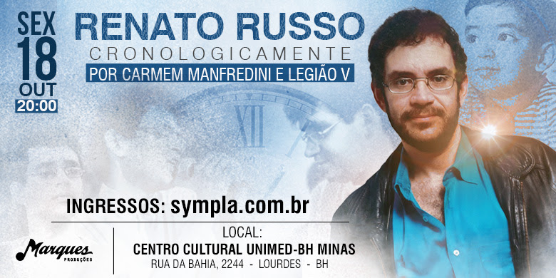 A banda Legião V, juntamente com Carmem Tereza Manfredini, irmã de Renato Russo, apresentam o espetáculo musical e audiovisual que contará a história de vida de Renato Manfredini Junior, o Renato Russo, cronologicamente, através das músicas da Legião Urbana.