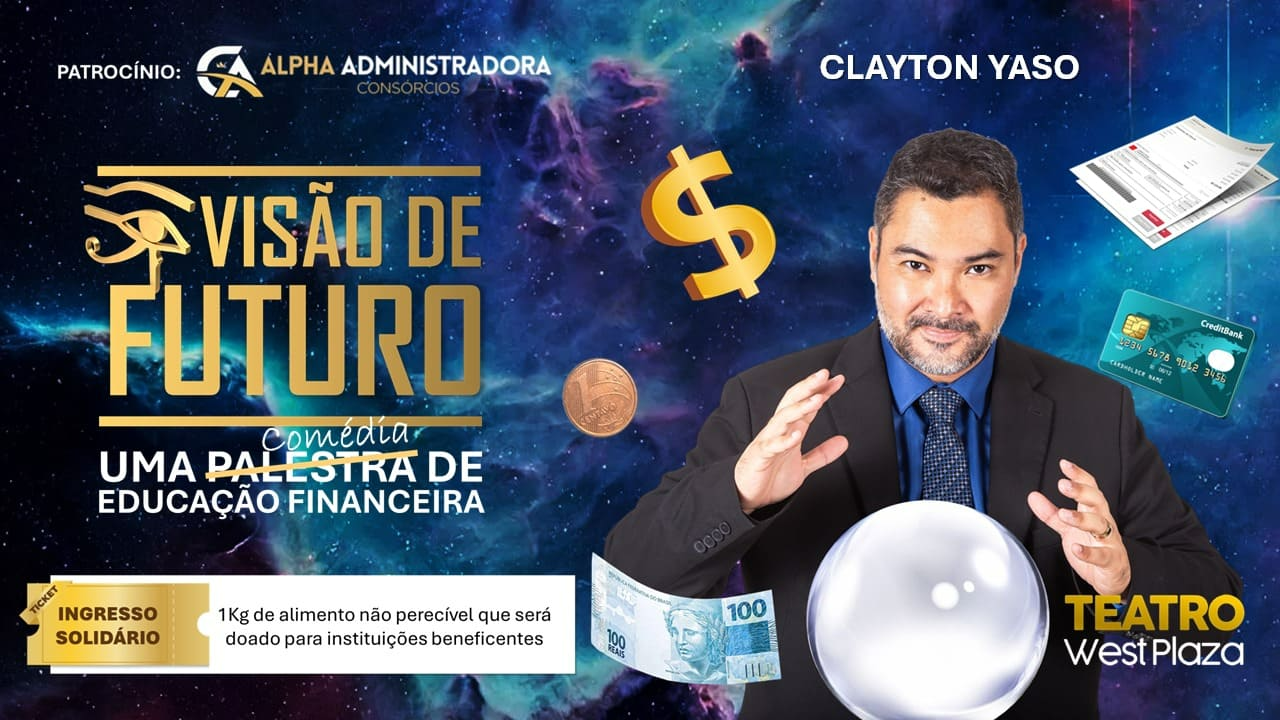 E se você pudesse decidir o seu próprio futuro? Essa é a proposta de "Visão de Futuro", um espetáculo no formato palestra-show idealizado e apresentado por Clayton Yaso. Com uma abordagem inovadora, o evento combina conhecimento e entretenimento, desmistificando a educação financeira de forma leve e divertida.