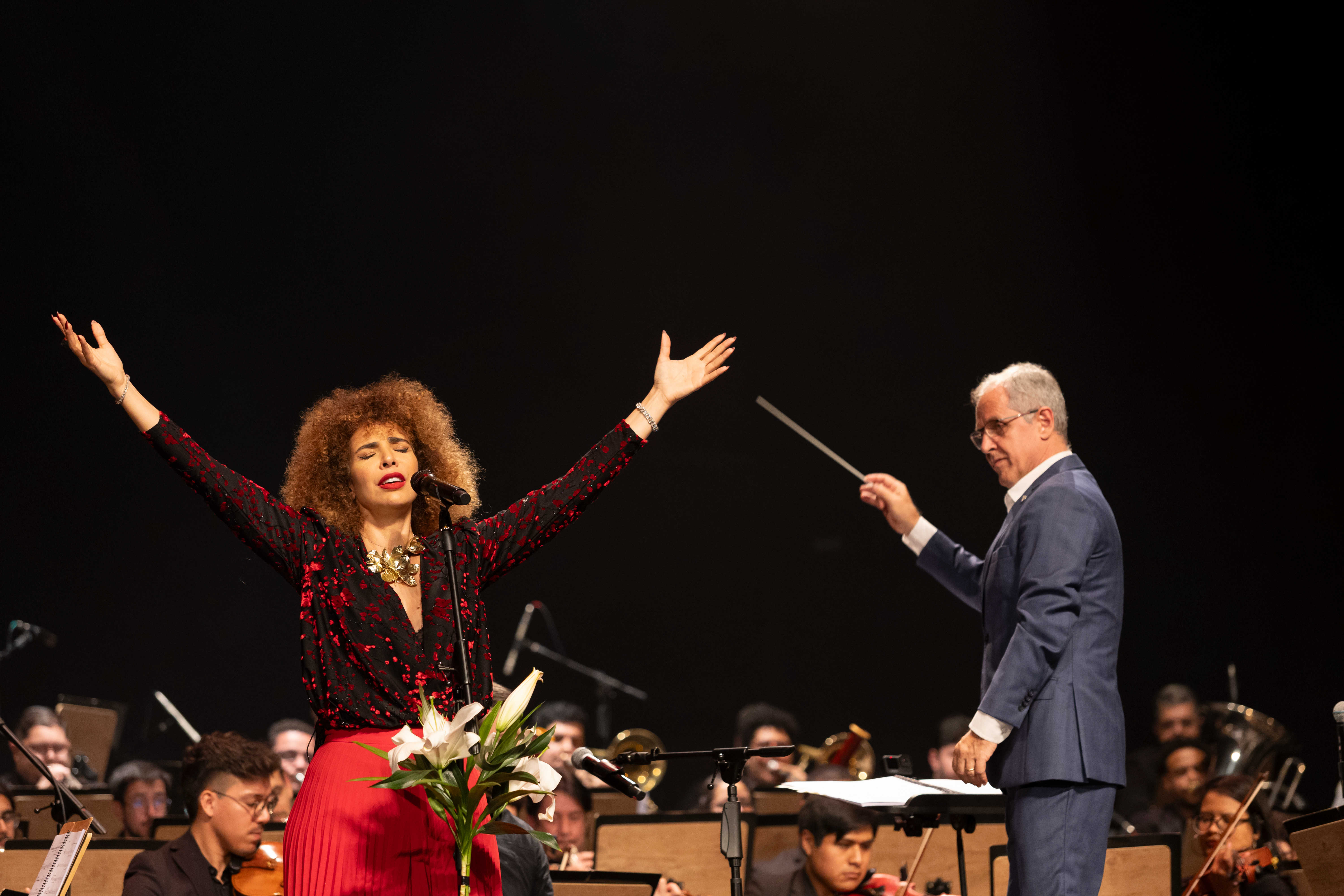No repertório, a artista interpreta sucessos como “Não Me Deixe Só”, “Segue o Som”, “Boa Sorte” e “Ai, Ai, Ai” em versões inéditas com arranjos sinfônicos. A regência é do maestro Edilson Ventureli, que conduz a orquestra formada por jovens talentos do Instituto Baccarelli — uma das mais relevantes iniciativas de formação musical e inclusão social do país.