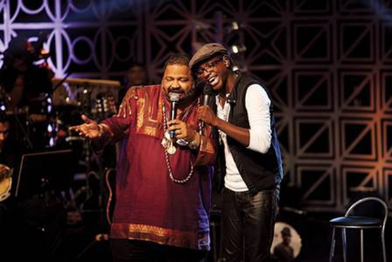 | Arlindo Cruz e Mumuzinho cantando a música “Caozeiro” na gravação do álbum “Mumuzinho ao Vivo” |