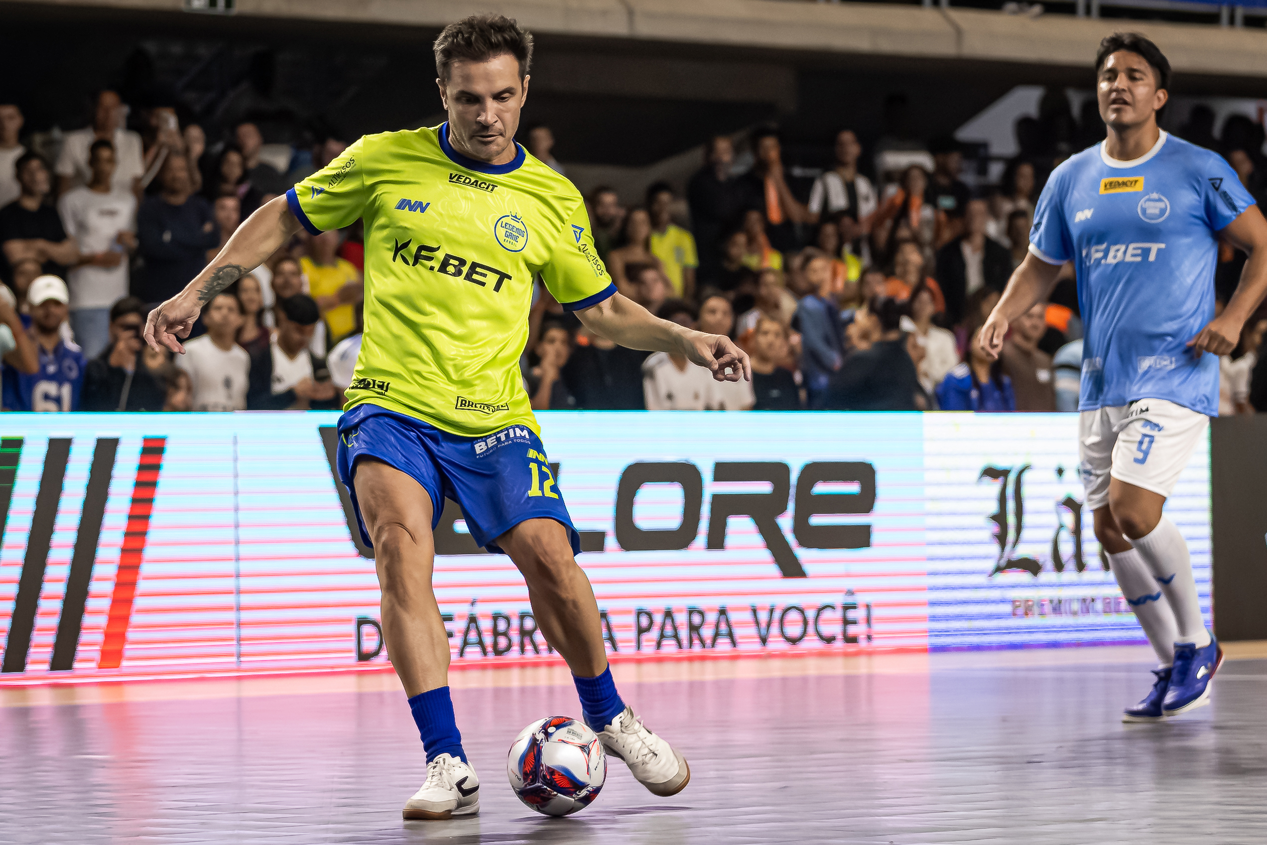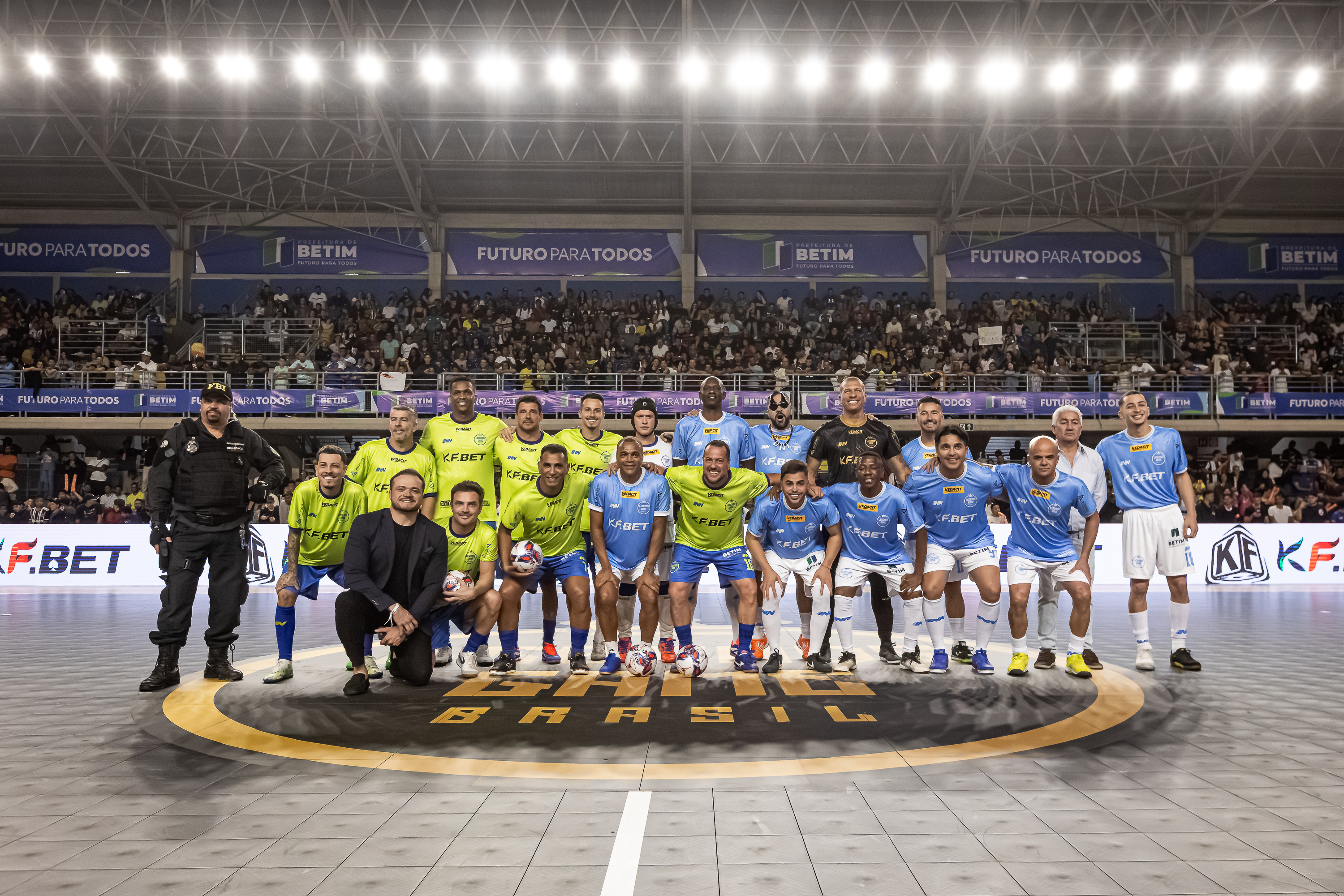 Apesar das provocações, o clima foi de festa do início ao fim. Antes da bola rolar, o público acompanhou apresentações de futebol freestyle e sorteios de brindes. Às 19h, o atacante Jô subiu ao palco com o show de pagode “Jogando em Casa”, arrancando aplausos e embalando a torcida antes de também entrar em quadra para a partida.