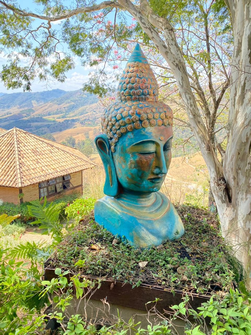 Amanda Djabraian ao lado da estátua de Bronze do humorista Golias, que adorava passear em Serra Negra |