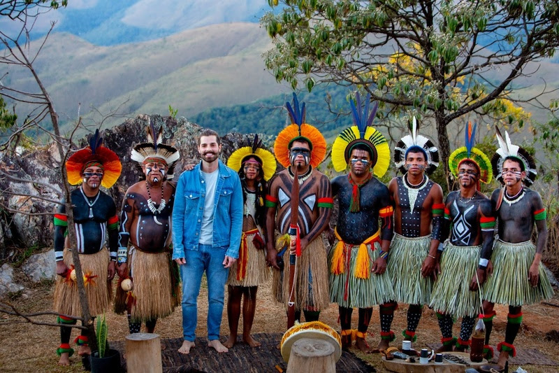 | Alok com artistas da etnia Kariri Xocó, em 2021, para gravação e produção de “Canto do Vento” |