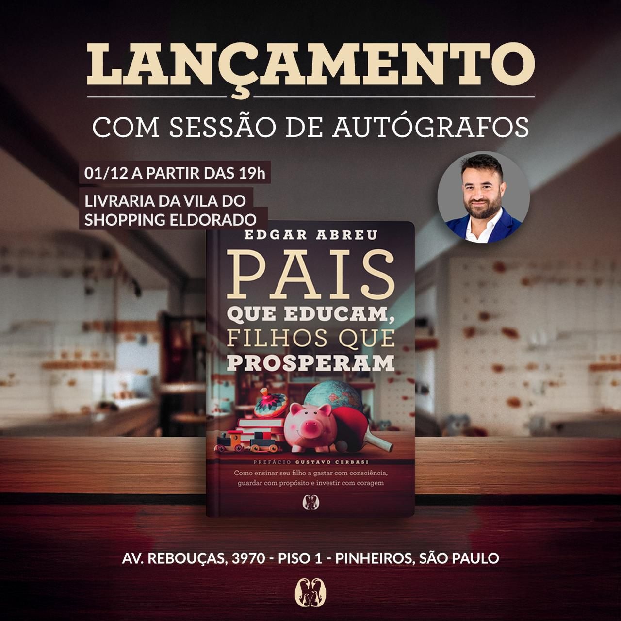 Em tempos de inflação, boletos e crianças cercadas por estímulos de consumo desde cedo, a pergunta ecoa nas famílias brasileiras: como preparar os filhos para lidar com o dinheiro de forma saudável? É exatamente essa a proposta de "Pais que Educam, Filhos que Prosperam", novo livro do educador financeiro Edgar Abreu, que será lançado em São Paulo no dia 1º de dezembro, na Livraria da Vila do Shopping Eldorado.