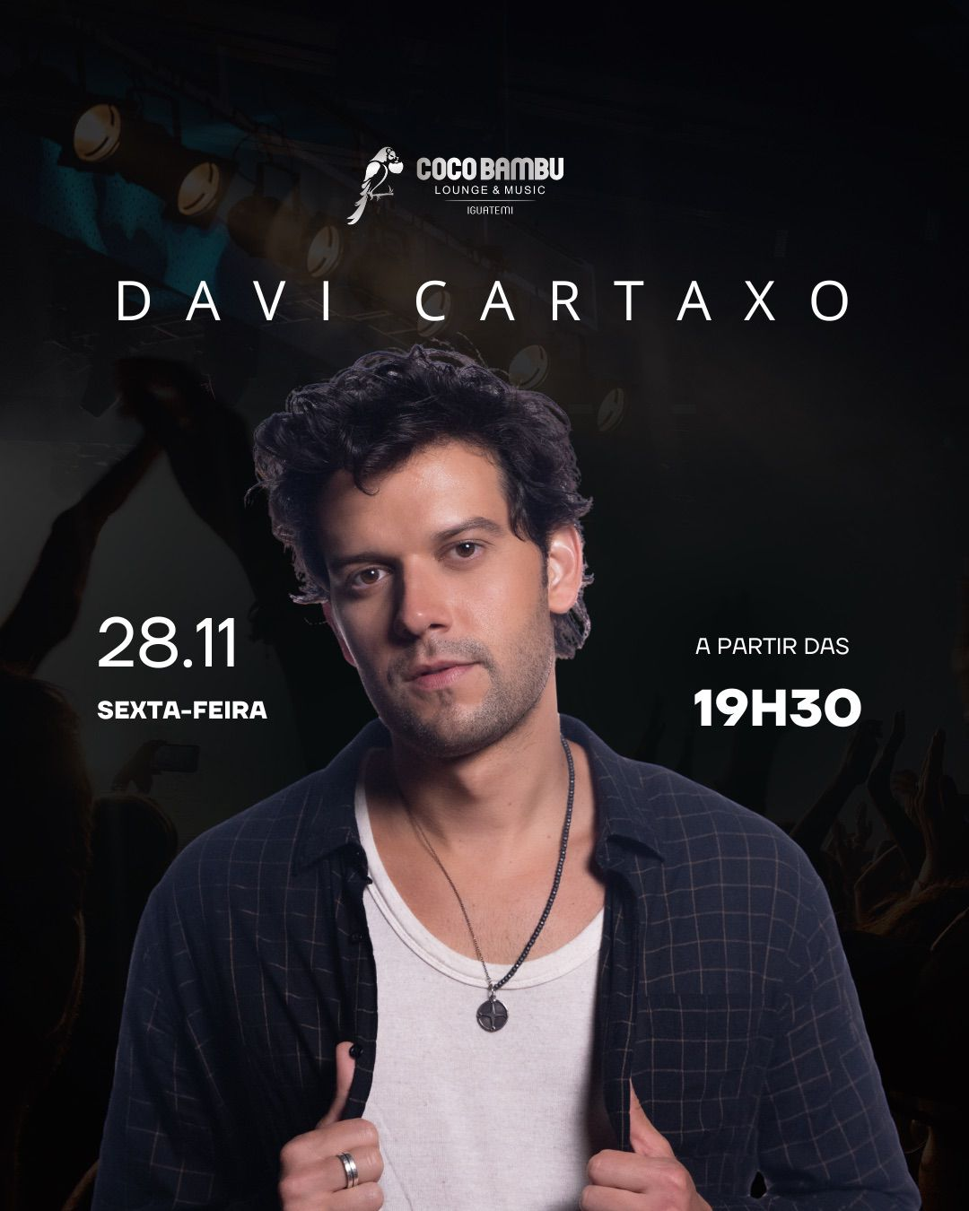 Em constante transformação, Davi Cartaxo, de 34 anos, vai apresentar pela primeira vez os singles recém lançados, Pequena e Pretexto, em show inédito no Coco Bambu, em Fortaleza. As faixas dão início a uma nova fase em sua carreira, mais madura e enérgica, com sonoridade moderna e complexa.