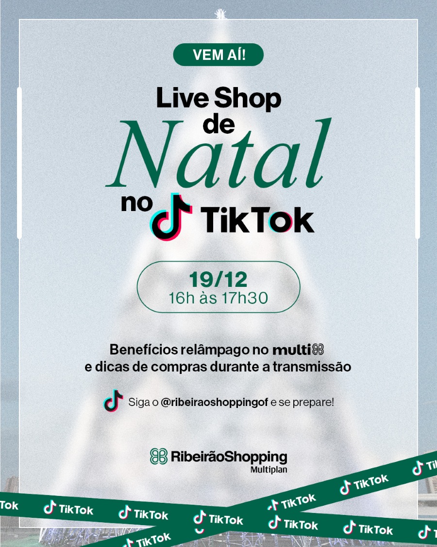 Em uma ação inédita, o Ribeirão Shopping realizará na sexta-feira, 19 de dezembro, às 16h, a sua primeira Live Shopping, que acontecerá em seu canal oficial no TikTok (@ribeiraoshoppingof). A transmissão marca a estreia do formato interativo nesta plataforma de compras no empreendimento e terá duração de 1h30, quando três apresentadores circularão pelo mall e lojas, trazendo dicas de presentes, sugestões de compras, novidades e oportunidades especiais para o público que acompanhar a transmissão em tempo real.
