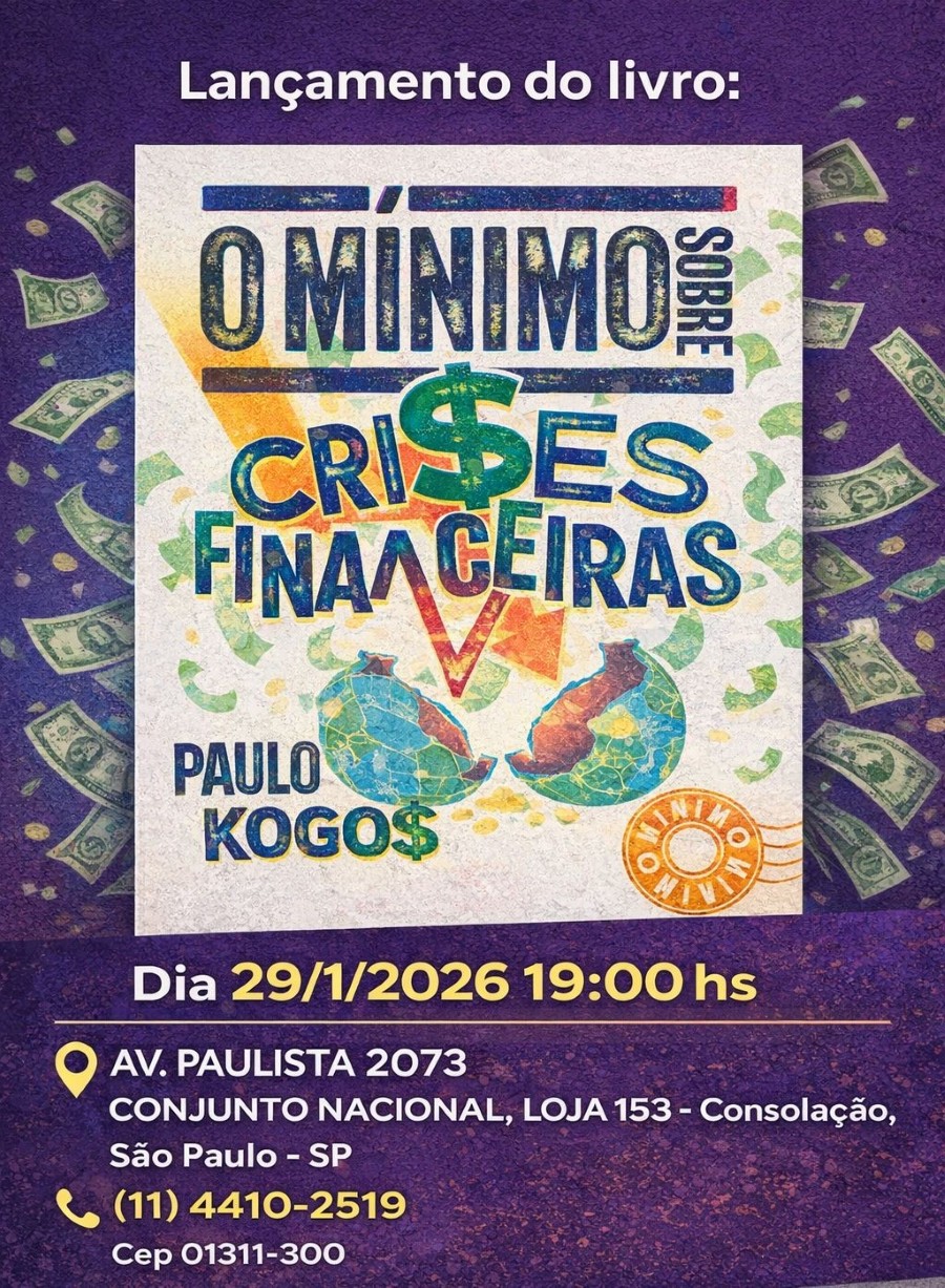 Paulo Kogos lança seu terceiro livro em um intervalo de apenas três anos, reafirmando sua intensa produção intelectual. A nova obra, “O Mínimo Sobre Crises Financeiras”, integra a série “O Mínimo Sobre” e propõe uma análise direta, didática e fundamentada sobre os principais mecanismos que levam às crises econômicas ao longo da história.